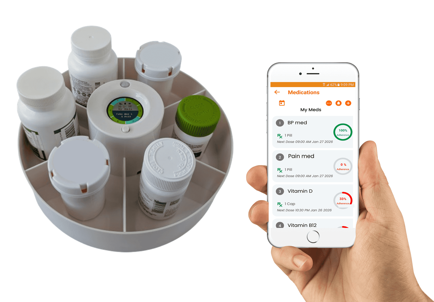 Wi-Fi enabled Smart Medication Organizer replaces guesswork with a seamless system that works with your original medication bottles to fit your lifestyle. Ideal for anyone who wants a simple, stress-free medication routine, and stay connected with family or caretakers for better adherence**.