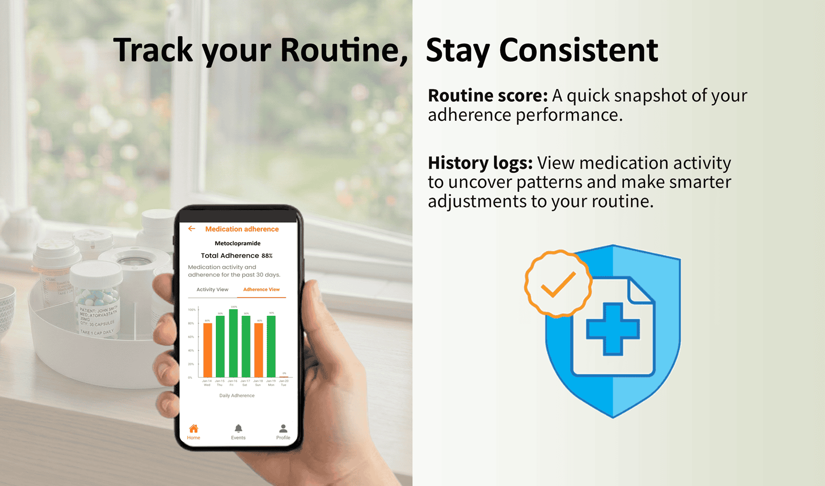 Keep family and caregivers informed with your medication activity for extra support.